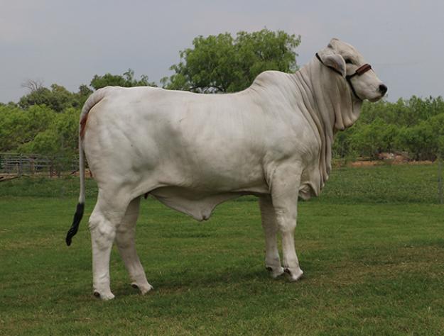 Miss 4F Polled Dee 94/6 (P) is an outstanding, long and deep bodied, good looking daughter of the Register of Renown +LMC LF Ambassador that is one of the best POLLED Brahman bulls of all time. His cattle are very competitive in all arenas as proven at the recent Houston Livestock Show where LMC and us sold a granddaughter for $19,000 to Kylie Sellman to top the ABBA Sale. The next day she placed 2nd in a tough class of 28 head. Her sister Kendyl also won Reserve Senior Champion with her Ambassador granddaughter LMC ECC LF Polled Lolo who also won the $10,000 San Antonio Jr. Show last year. Another Ambassador granddaughter owned by Mackie Simpson was Reserve in her Division as well. She was bred by our good friend Mike England. Both of these baby dolls were sired by LMC Polled Authority.