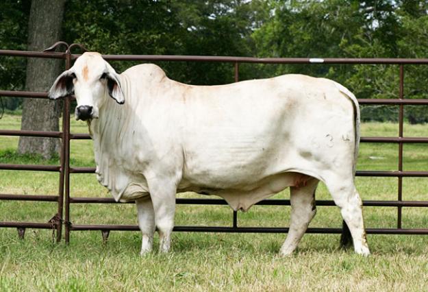 Another outstanding bred cow that carries that V8 look and the power and productivity that V8 females are known for. 634/6 is a +JDH Karu Manso 800 daughter out of +Miss V8 14/6, a full sister to Miss V8 933/5, the dam of lot 1. The 14/6 cow has 6 females in the herd with 3 of them being flushed. We sold one of her daughters in the 2008 World Brahman Congress Sale to David and Joy Deguara for $16,500.00 She has been a terrific flush cow for them. 14/6 has also produced a herd sire Mr. V8 885/6 owned by Nolan Russell, plus the Res. Champion heifer at the San Antonio Jr. Show, Miss V8 186/7 for the Tom Oden family. Both of these were littermates to 634/6. 634/6 stems from the same cow family as the Lot 1 female, both tracing back to the legendary +Miss V8 4/5 donor , a Suva daughter owned by V8 and Lazy D Farms. The 4/5 cow family is easily recognized by their feminine look yet powerful construction. They are long bodied, level hipped, and carry excellent breed character and pigment. These females are bred for production and fertility for generations. We flushed 634/6 in 2009 with + Mr. V8 901/4 and produced 5 pregnancies from the flush. This fall we will be flushing a full sister to 634/6 who is nursing a replacement heifer sired by Mr. V8 620/6. She sells bred to Mr. V8 659/6, our young herd sire owned with Jeff Jenkins, for an early spring 2013 calf.
