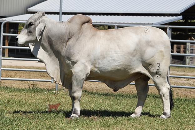 If you are in the market for a real good Brahman herd sire, look no further. 231/5 is a bull that has a ton of capacity, great rib shape, good bone, super long, and a correct hump placement. He has a tremendous pedigree that contains such breed greats as PRESCOTT, MADISON, YL 204, MARRI, and UNION. If you seek to produce cattle that have a lot of capacity and breed character, do not let 231/5 pass you by.