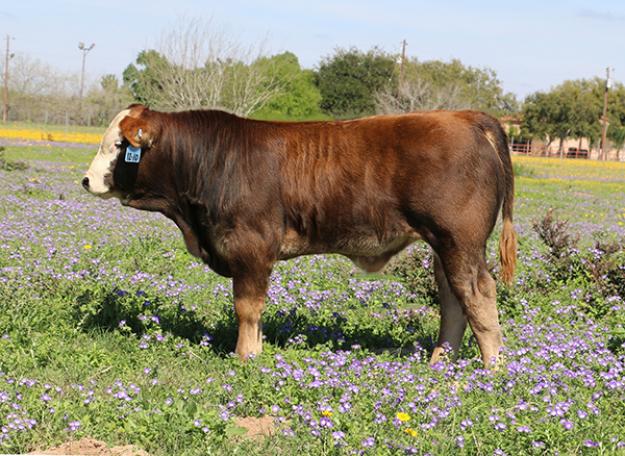 B247 is one of the pre sale favorites due to his thickness, base width, length, muscle, thick top, extension and overall power. He is a multi generation Simbravieh sired by our LMC LF Braveheart bull that we own with Louie Flores and Dean Fuchs. He has produced champion heifers and steers for all three of us. Braveheart was sired by the International and many times champion and sale topper LMC Johnny Walker and is out of the famous Braunvieh donor FG Bess who was also the dam of the great WTR Baylee.
