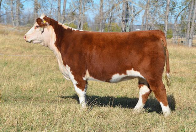 This heifer is one of three full sibs on offer to the Hot New Sire *AXA Golden-Oak Xceed 704X*. Xceed is the newest leading sire for Topp Herefords and Semex. We believe cow families are critical in the Hereford breed and you will see the great Nellie 528N donor has done it again in these full sibs. Check out their full sister in 701X and you will clearly see the combination of power and phenotype with breed leading udder quality.