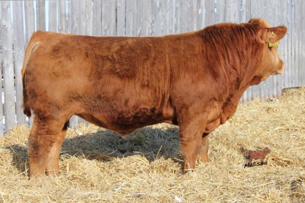 Big Hoss carries extra length, muscle shape and top, all in an outcross pedigree. We are very happy with our herd sire JSJ boilermaker for how he stamps his calves.