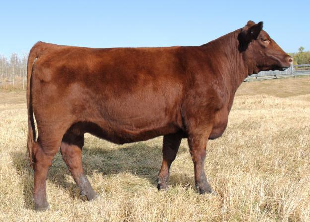 -Ultra fancy, correct daughter of Red Northline Rev 341R, 2007 Canadian National Champion bull and one of the elite maternal sires in the breed. Rev is the top 1% of the breed for yearling weight and milk EPD's.