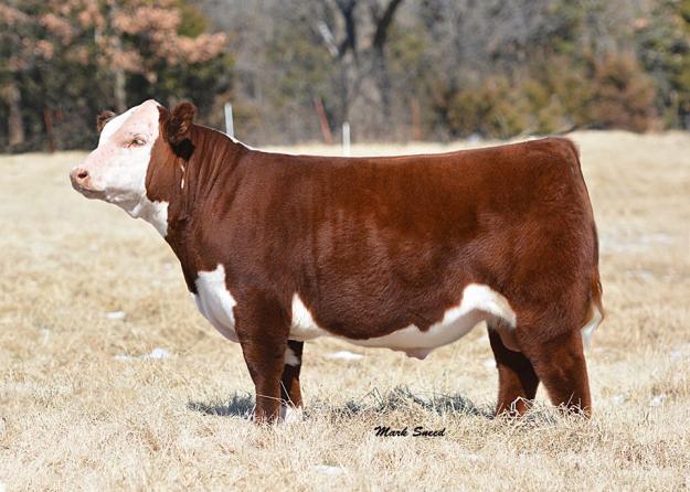 He’s royally bred and he’s dang good to boot! His sire, dam and full sister are all Denver Champion. He has all the look and design you want in a cross bred bull yet puts it all together in a PB Hereford package. Line up, this is one you’re going to want to get in on! Ships from Monticello, IN.
