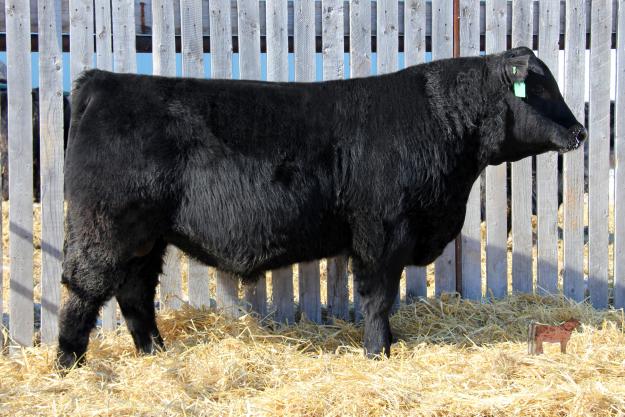 BW: 92 205 adj: 670 WW ration 97 rank 7/11- 43A sire was purchased from Wes and Kim Olynyk. Crescent Creek Ideal 28X was selected for his superior performance, excellent carcass data and his 40 cm scrotal development. He sired our top selling bred heifer at the Harvest Sale. Thanks to Ivanhoe Angus for their support.