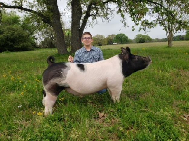 Grade 8 - HOGS - Hi I am Peyton Colley. I am an 8th grader at Franklin Middle School. My sister and I show market hogs. We have three pigs this year. I have shown in the Robertson County Fair since 3rd grade. I love working with my pigs. I am responsible for feeding brushing and walking them. I have spent countless hours cleaning their pens. Every week I also help my dad weigh them. We adjust their feed based on their weight gain. This year I was going to show a barrow. I have enjoyed working on showmanship with him. Showing pigs has taught me things I will use later in life such as responsibility multi-tasking and problem solving. All of the money raised from my hog will fund next year's project. Thank you so much for your consideration.