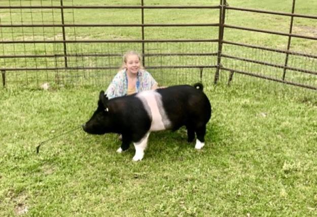 Grade 6 - HOGS - Hi my name is Zoe Davis and for the past four years my main project has been showing market swine at the Robertson County Fair. This was my first year with a barrow. His name is Luka and he was born at White Farms in Bremond TX. This year has been a fun learning experience for me and I am very grateful for the opportunity. I have learned responsibility patience and proper care for Luka. I was responsible for feeding watering brushing washing exercising and cleaning Luka’s pen. I most enjoyed sitting in Luka’s pen just brushing and bonding with him. I will never forget the time we have spent together building a strong relationship.