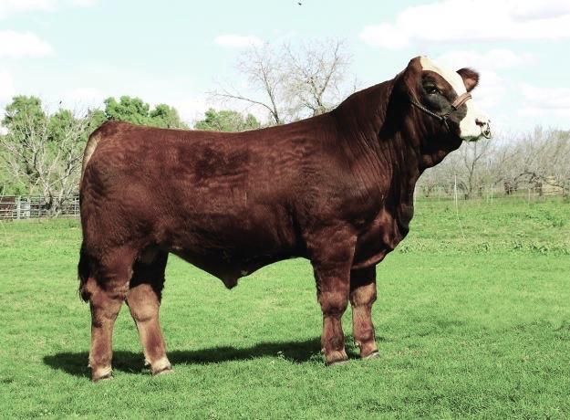 We have always believed in introducing a drip of new blood every year and if it works, you turn into a drop the next year. This year we chose to invest in half interest of Adelante who is solid red with a blaze face, is rich in breed character, bone, and muscle, has a big foot and offers NEW BLOOD plus we reciprocated with a good friend and client. He also has a super tight sheath. We look forward to this bull producing calves with lots of style, color and eye appeal.