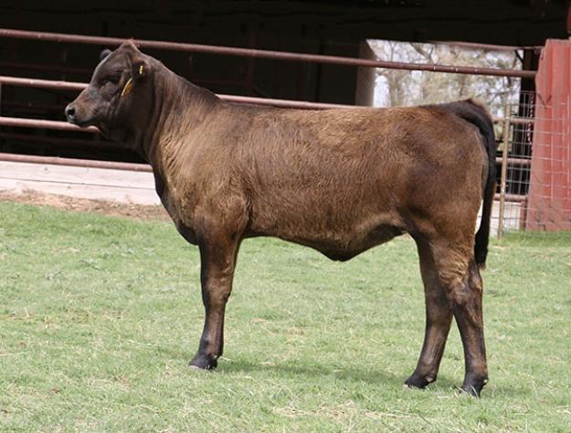 The advantage to owning 3/8 Simmental x 5/8 Brahman cattle is sourcing the vast bank of Simmental sires across the country. This past year we selected the exciting JASS On the Mark bull and he produced some unique cattle out of our productive LMC Pioneer Woman donor. Henley is no exception, as she is as true in her lines as any in the sale and is one of the most extended females throughout.