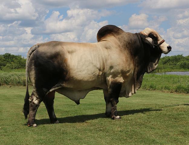 JS Polled Patron is a smooth polled, deep bodied, big boned, heavy muscled herd bull sired by the POLLED Register of Renown Bull, + Mr. V8 212/3 and a straight bred Hudgins/Double A cow. Polled Patron is rich in breed character, pigment, correctness and is destined to make a big impact on the Brahman World as more and more progressive breeders are using POLLED GENETICS. Smith Brahmans in Louisiana bred him.