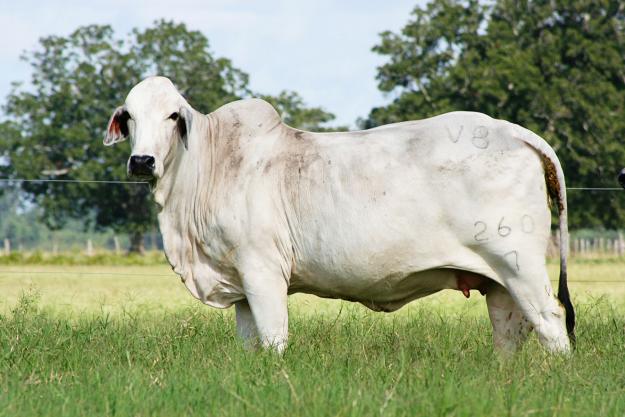 Here is a very easy fleshing female that has a totally straight-bred J.D. Hudgins pedigree, including Karu, Magnifico, Datapack, and more. Sloan purchased her dam, JDH Miss Jordan Manso, when he purchased all of Adrian Gubert’s herd as part of the JDH-Mangum-Gubert division several years ago. A few summers back, Sloan was running short on herd bulls and Bob Hudgins let us borrow this bull for the breeding season to breed to those JDH cows he bought from Adrian. JDH Ridings Manso 939/6 is a Magnifico son who is very thick and moderate framed. He was an excellent producer for us in the short time we used him and we kept 3 of his daughters in our herd. These females are what you would expect from a Hudgins bloodline, lots of beef, deep bodied, and excellent American Brahman breed character. She also has a very clean underline and small teats. The 380/6 bull on JDH cows has been a wonderful cross for us. The young 243/7 bull who was Grand Champion at San Antonio last year and Reserve Champion at last year’s Kick Off Classic is a 380/6 –JDH cross. This calf should be outstanding and valuable whether it’s a male or female.