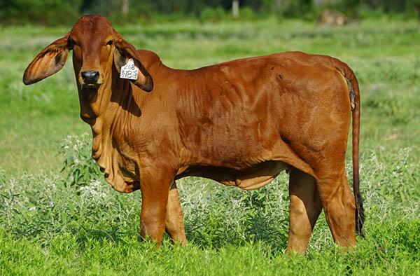 Elena 28/4 is a beautiful dark red female that exhibits top line American Red Brahman breed character. She is deep bodied, long, flat of back and has excellent hips. 28/4 is another VL Elena 130/0 that has been a tremendous producer for Santa Elena. She has produced numerous replacement females. 130/0’s performance numbers are slightly above breed average, but her milk numbers would be among the best.