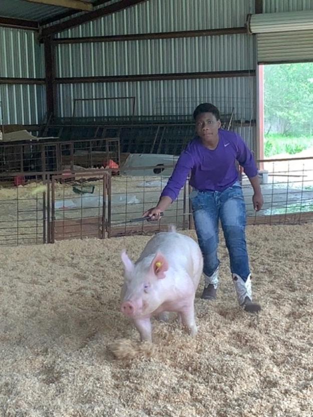 Grade 9 - HOGS -Hello My name is Antonio Porter. I am fourteen years old and I have been showing hogs for two years. In these two years I’ve learned that you have to be dedicated and responsible. I have learned several things that will help me later in life like been on time and putting priorities first. I spend several hours a day at the barn every day to build a relationship with my hog. I enjoy taking care of hogs and it has made me consider to peruse a degree in agriculture.