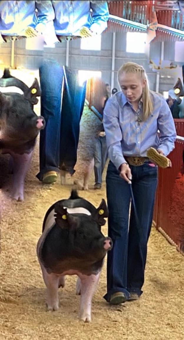 Grade 11 - HOGS - My name is Zoey Pruitt. I am a junior at Bremond High School. I have been showing pigs for 9 years. This year I raised a barrow to show at the Robertson County Fair. I called him Ott naming him after the breeder Ottenwalter that he came from. This year raising pigs has taught me to expect the unexpected to go with the flow and to not give up just keep giving it your all!I play volleyball (club & school) basketball and softball. Once practice is over my brother sister and myself go to the barn to work with our animals. We walk brush and condition their hair and skin every day. Every other day they are given a bath. Shavings are changed and pens cleaned at least once a week sometimes more often if needed. I am looking forward to the future and a promising senior show year!