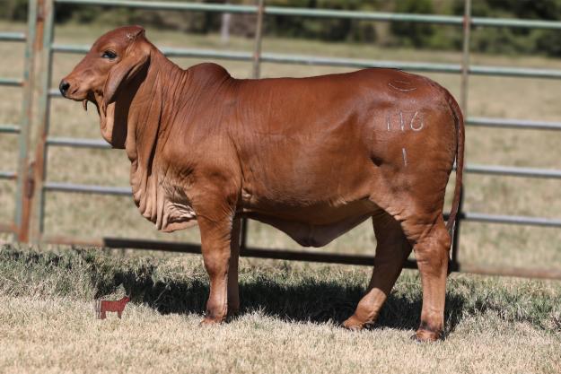 A beautiful Maximus daughter that is designed with plenty of bone, spring of rib, and the appeal to have a successful show ring career.  Her pedigree is the kind you can build any operation around.  Her dam, Miss BLS Atlantis 76/9, is a soggy made, big-hipped donor that is sired by +Mr. Winchester Magnum 999 and out of an SRS Steamboat daughter.  Catalina is sired by one of the most popular Red Brahman bulls being utilized right now, +Mr. WCC Maximus Rojo 82/4.  Maximus progeny speak for themselves.  Over the past year, he has sired more winners than any other red sire, with the likes of the 2021 International Grand Champion Red Bull, Mr CBR 667/8 “Cutter”.