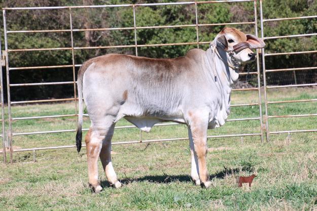 If you're a long time breeder with a big herd or a rancher that's just getting started then keep your eye on lot 7. The opportunity to buy a heifer with this type of celebrity pedigree is unheard of in the brahman breed. Kendall is very prolific with an extended clean front, loads of muscle, and a lot of style points. It's always tough for us to let a heifer of this caliber leave the ranch but we're positive this young calf will make an immediate impact on anyone's breeding program. 738/5 is out of two international champions backed by many legendary bulls who all played an integral part in building the brahman breed. Kendall has excellent pigment giving you the chance to breed her red or grey. The possibilities of this lot are endless.
