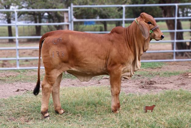 Another eye catching female that descends from a pedigree known for making great females! A flushmate to Ms Chaparral 132, 133 is also a full sister to MS CHAPARRAL 114, the 2015 AJBA All-American Reserve Grand Champion Red Female, and a maternal sister to MS CHAPARRAL 119, who continuing to get plenty of grand champion slaps! This outright impressive female has great bone and is pretty fronted while standing on structurally correct feet and legs. With unlimited future potential with a heifer like Ms Chaparral 133, she is not one you want to pass up on!