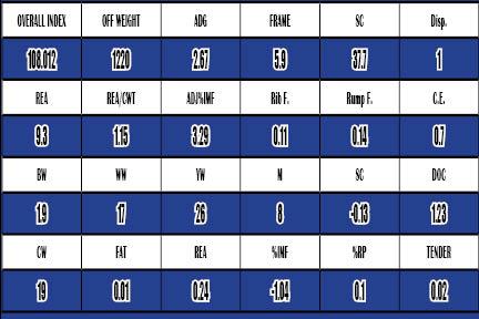 We are excited to be able to offer this outstanding herd sire prospect that combines performance, a practical build with a breed leading pedigree. AT Mr. Voodoo Manso 638/7 is the # 8 overall indexing bull in the test by virtue of his low birthweight EPD of 1.9, above average muscle with a 1.15 REA/CWT, average marbling of 3.23, 2nd highest ADG of 2.67 and the largest scrotal measurement. Due to these measurements and his moderate 5.9 frame score he should produce offspring that are easy fleshing, fast growing, have positive carcass quality and reach puberty at an earlier age. As you might expect from this proven data he is the result of some of the most proven genetics in the Brahman breed. His sire is a son of the National & International Champion and Vanguard Sire (+)JDH Woodman Manso and out of a daughter of the Vanguard Sire (+)JDH Datapack Manso. To further compliment this pedigree is his dam who has been one of our top producers that calved first at 31 months of age and then regularly after that. To complete this impressive package Voodoo charts positive for 11 traits. It is hard to find a bull that combines it all but Voodoo does and we think he represents our progressive program well. Buy this one with the utmost confidence!