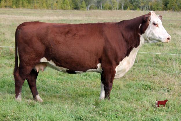 19U is a great mother. She has a lot of milk and raises a nice calf each year. Her udder has a perfect shape and she has great mobility. Bred to: Boyd Masterpiece 220 on Apr 19. Preg checked safe.