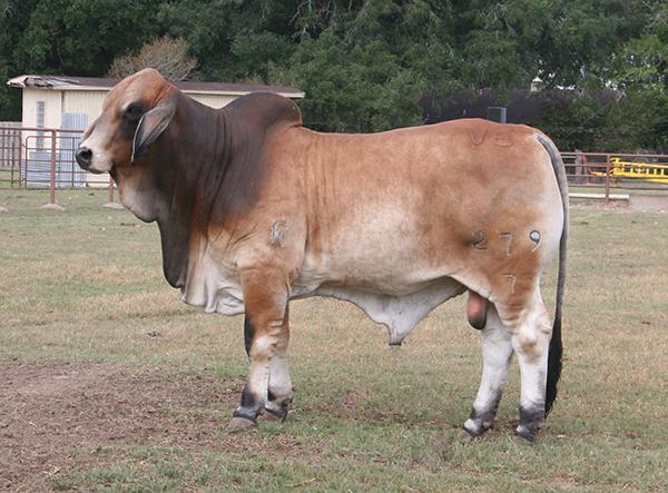 2-6 is a big boned, heavy muscled polled show prospect sired by MR V8 279/7 (P) and the popular “Donna” donor cow raised by Schneider Brahmans and now owned by 4F & England Cattle Companies. She was the first polled/scurred cow that La Muneca bought when they started their polled program. As you can see in her photo, she is a TANK as will be this daughter. Donna has raised several real good progeny including the BEEF MACHINE LMC Poll Aussie, LMC Polled Donna and many more.