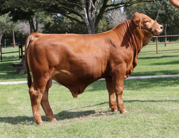 This bull is a solid red, big boned and bold sprung herd bull with a lot of look and character. He is sound in his feet and legs, is wide based and has that herd bull look. He is angular, has a good disposition and has that loaded pedigree to boot. This prospect has a little extra sheath yet is plenty clean and extended in his front end and should produce some excellent show steers for you as well if you were looking to utilize him in a club calf operation. A sure enough show and herd sire prospect that offers all the goodness that the Jennie Walker and Pappadeaux individuals have to offer. His full sib LMC BBS Andrea topped the LMC GenePLUS Online Sale II selling for $9,000 for 1/3 interest to our good friends at La Reina Ranch. Another full sister, LMC BBS Alexis was the second top seller selling to Kaitlynn Miller for $7,300. This bloodline has been an exciting one as we are pleased with the results of this litter thus far.