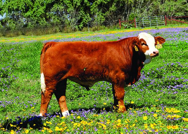 This bull calf will make a good herd bull or a darn good Simbrah show steer as he will classify everywhere with his color pattern and leather. He has the power, muscle, correctness and bone needed to be competitive. His paternal grand dam is the famous LM She Moves cow that has produced three International Champions and one Reserve. She is as good as it gets.
