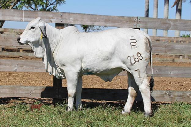 There is a word we use to describe this heifer; AWESOME. When you take a look at this heifer, she demands attention. To start, she is dark pigmented, feminine, and long, with a tremendous top and middle. She can, and will make an outstanding junior prospect with her gentle nature. 268/7 will also make a top donor female for her new owner; whereas she has a stellar pedigree that contains Mr. H. BOGOTA 253/1, MADDOX, CHARLEY JAZZ, and PRESCOTT. South Florida Brahmas reserve the right to one IVF flush after first natural calf, at our expense.
