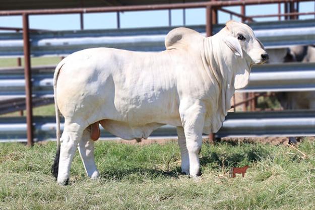This is a bull that can bring improvement to a registered herd as well as be a powerhouse bull for an F-1 operation. His lighter pigment will aid in siring those sought after F-1 tiger stripes and also benefit your steers going to the rail. His low birthweight of 73 pounds is an added plus.